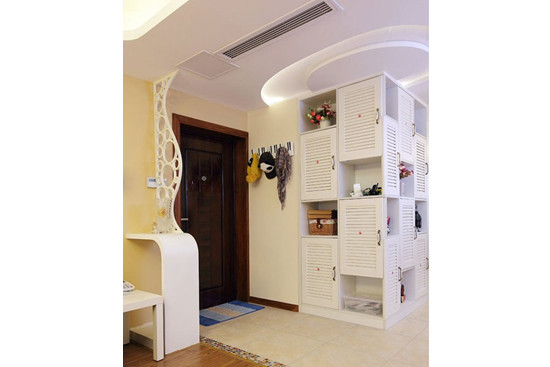眾多或開放或關(guān)閉的玄關(guān)格是這個玄關(guān)不錯的亮點,開放和封閉相同的設(shè)計很好的提供了裝飾和收納兩個功能,無論是綠色植物還是家中雜物都有了不錯的安放之地。