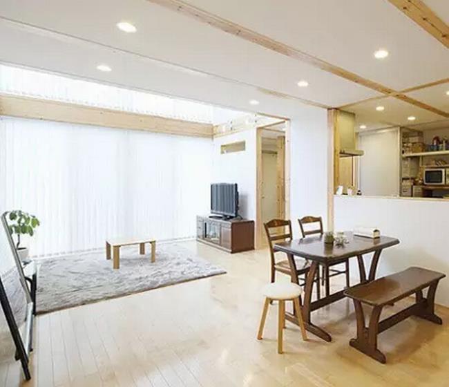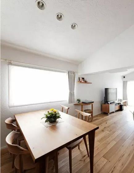 2、 百搭木地板戶型小——采光要好,搭配光面淡黃木地板,散射更顯空間大。