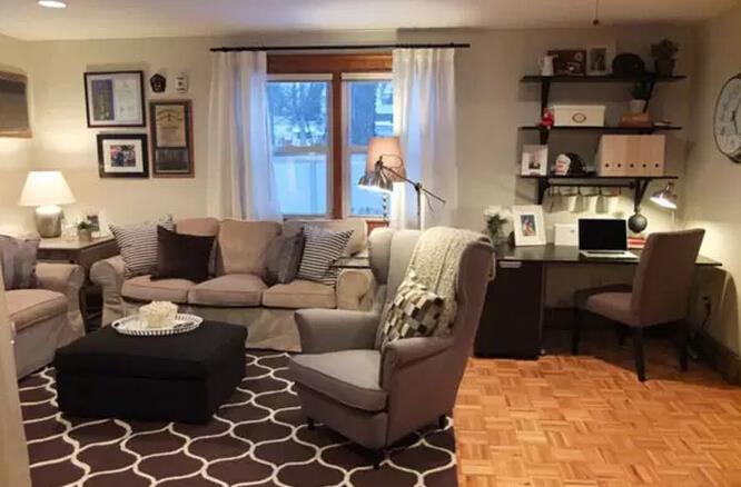 高級玩法,通過不同地板區分客廳與書房,混搭有風險,使用需謹慎。