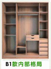 1、上部區域(衣柜頂板與中間區域之間)最上面是存放被子的地方,存放一些不常用的大小背包也可以。